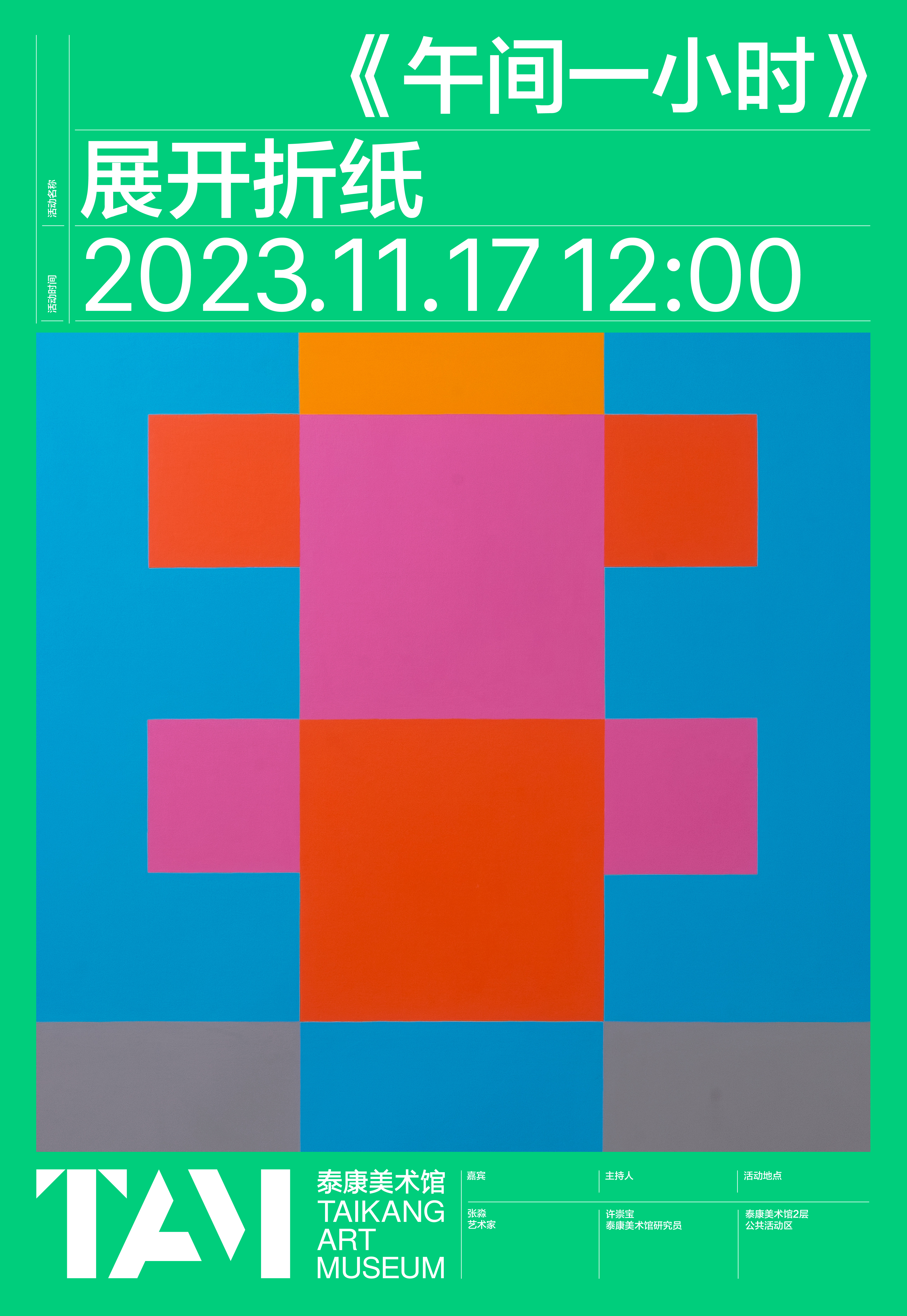 In this one-hour sharing session, the artist will guide us through “Unfolding Origami” to offer a new understanding of the relationship between two-dimensional and three-dimensional space.