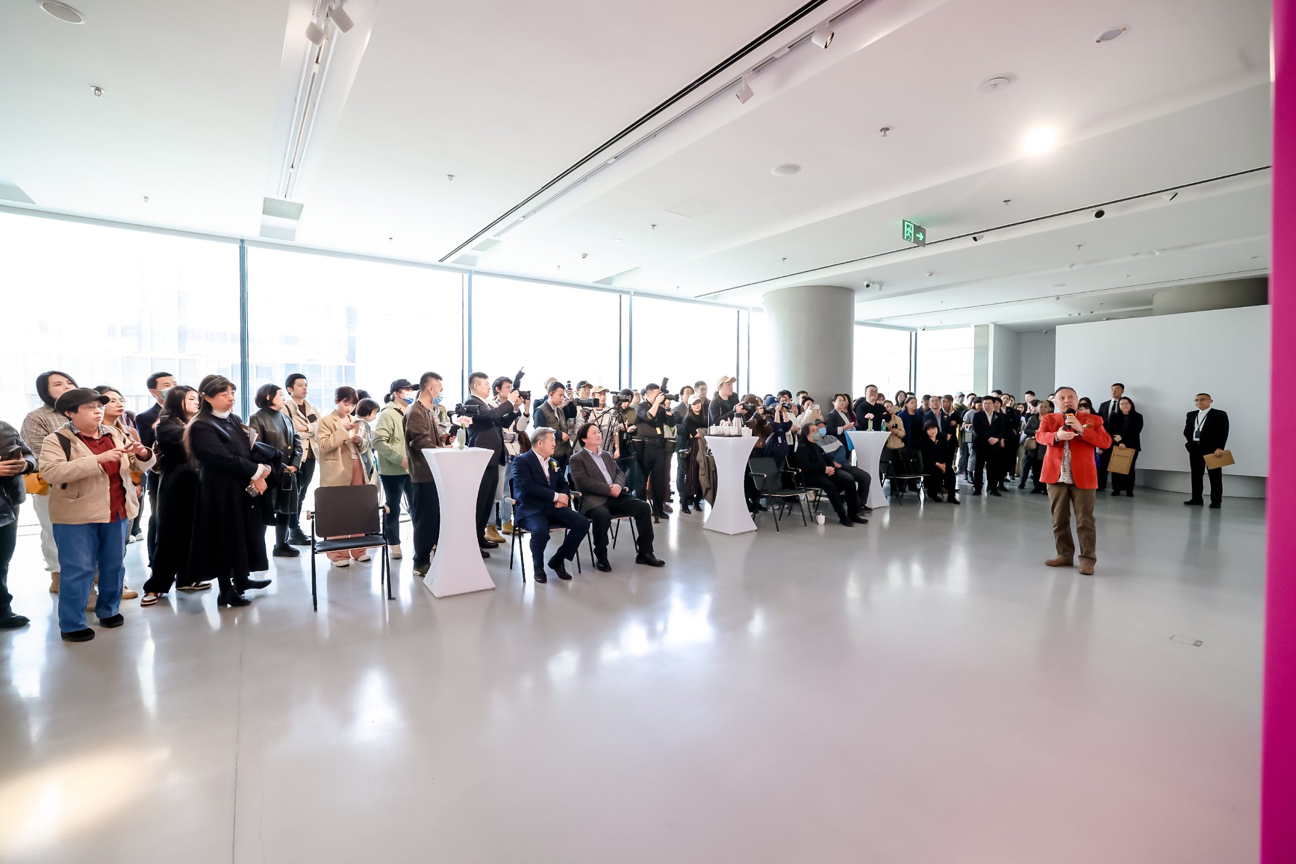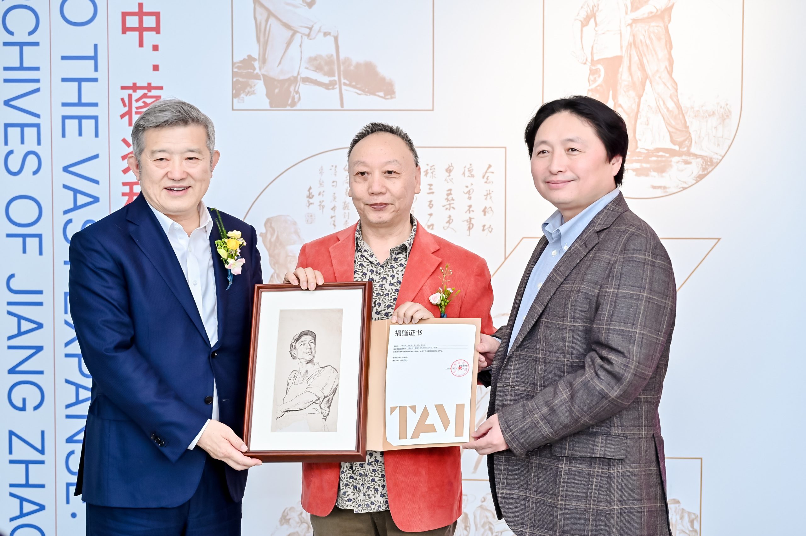 作为开幕式的重要环节,蒋兆和先生之子蒋代明向泰康美术馆捐赠了《中国人民从此站立起来了》画稿。蒋代明在致辞中讲道:“有个国庆节,我的父亲带着全家人去看烟火。我记得特别清楚,父亲手指着人民英雄纪念碑的方向说,当时他就是站在那儿,开始走方阵的时候他站在艺专队伍的第一排,扛着一面大红旗。他说的这个画面我到现在还记忆犹新,他脸上绽放的笑容像年轻人一样灿烂。我想他画的这幅画,画的就是他自己的心境,也画的是百万民众对美好生活的憧憬。”